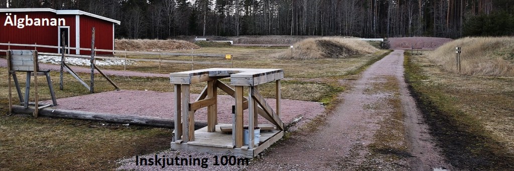 100m vallen ligger till höger om älgbanan och är försedd med en fast skjutplats. OBS!! Det är förbjudet att skjuta på 100m vallen om någon använder sig av harbanan.