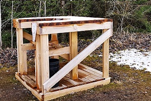 På 80m banan finns ett hus man kan gå in i, här inne finns två skjutbänkar. Vid den högra ges möjlighet att träna stående skytte om man vill. OBS!! Det är förbjudet att skjuta på 80m om någon använder sig av inskjutningen från 50m platsen, använd då istället 100m vallen.