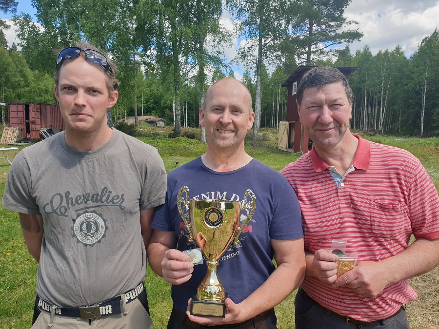 En nygammal skytt Thomas Söder var tillbaka för ta hem segern i ett mycket fint sommarväder i Norrby. Thomas har skjutit skeet under flera år men var nu tillbaka med fina 350 p. Han sköt jämnt och fint och var på pallen i både kula och hagel. Andra platsen belade Sebastian Karlsson med 339 p som efter ett par års skytte ny tog hem en fin silvermedalj. Han har tränat en hel del de senaste åren och varit med på en del tävlingar men tog nu klivet upp på pallen. På tredje plats kom Lars Björk på 337p.