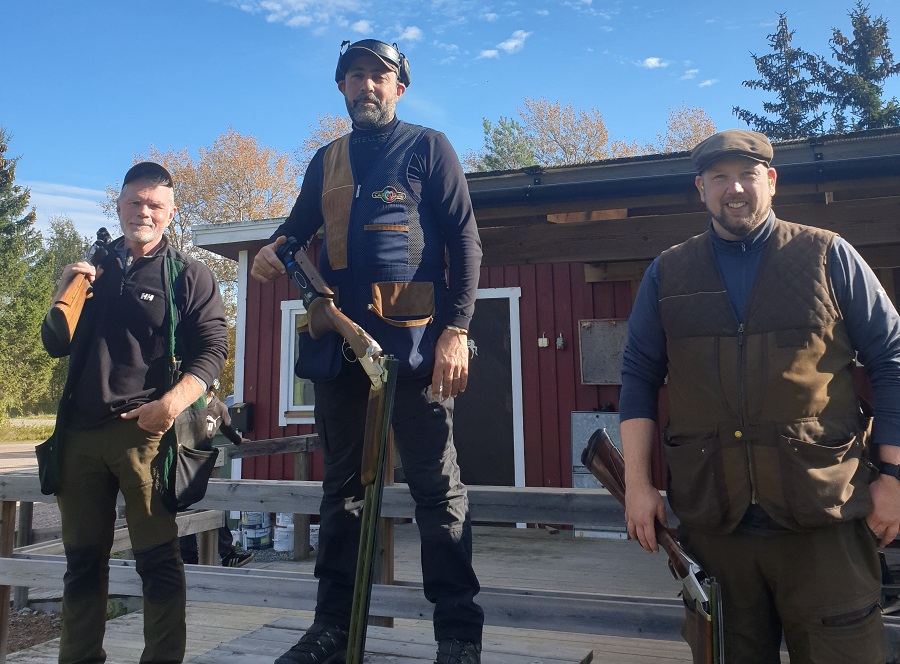 Västerås JSK:s skyttar på pallen. Fr.v. tvåa Simon Salo, segrare Jack Maroun samt trea Henrik Falk.
